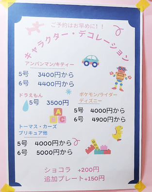 ※デコレーションの要望がある方はお手数ですが、写真をお持ちになって注文をお願いいたします。